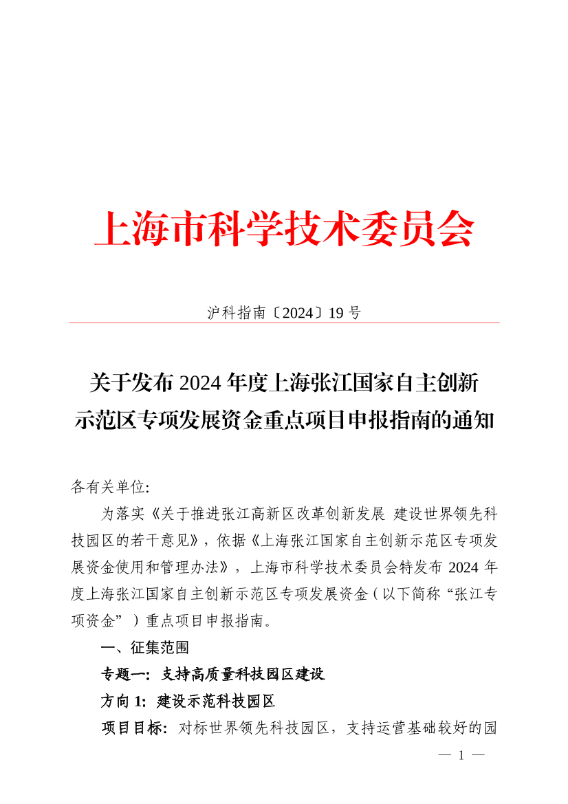 为落实《关于推进张江高新区改革创新发展 建设世界领先科技园区的若干意见》,依据《上海张江国家自主创新示范区专项发展资金使用和管理办法》,上海市科学技术委员会特发布2024年度上海张江国家自主创新示范区专项发展资金(以下简称“张江专项资金”)重点项目申报指南。