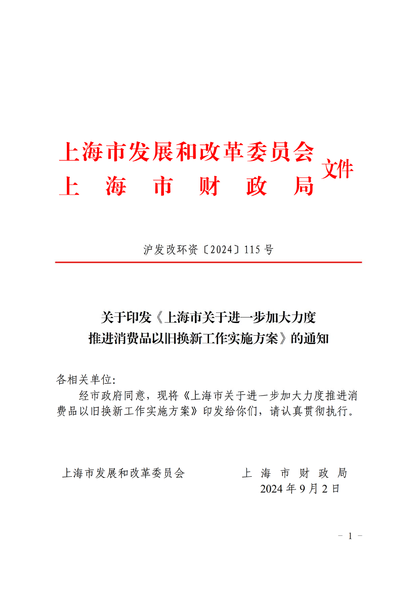 上海市关于进一步加大力度推进消费品以旧换新工作实施方案