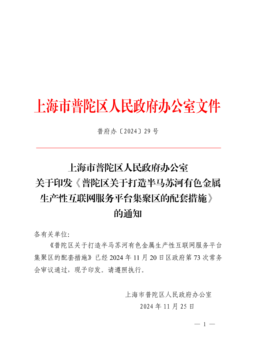 普陀区关于打造半马苏河有色金属生产性互联网服务平台集聚区的配套措施