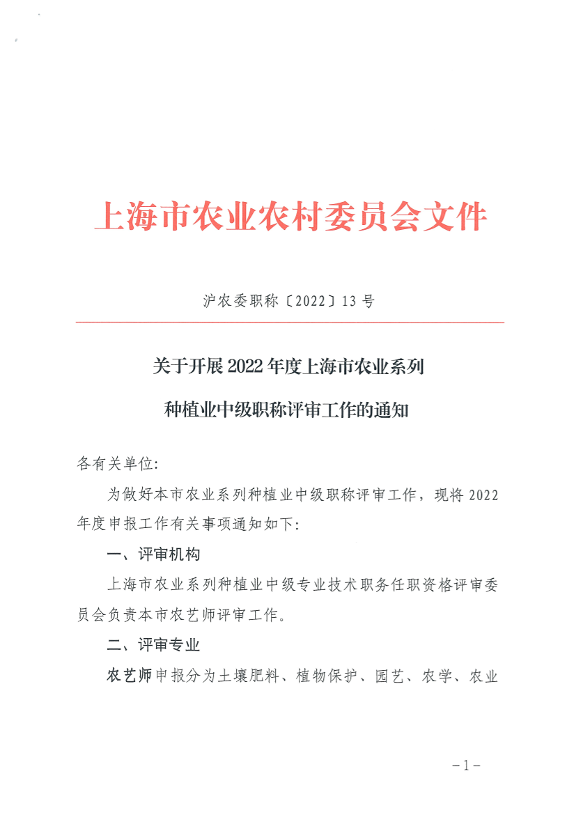 为做好本市农业系列种植业中级职称评审工作,现将2022年度申报工作有关事项通知如下: