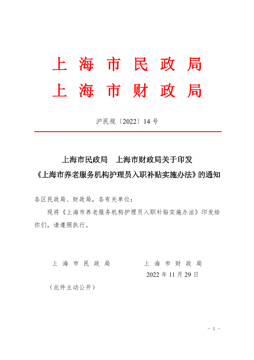 现将《上海市养老服务机构护理员入职补贴实施办法》印发给你们,请遵照执行。