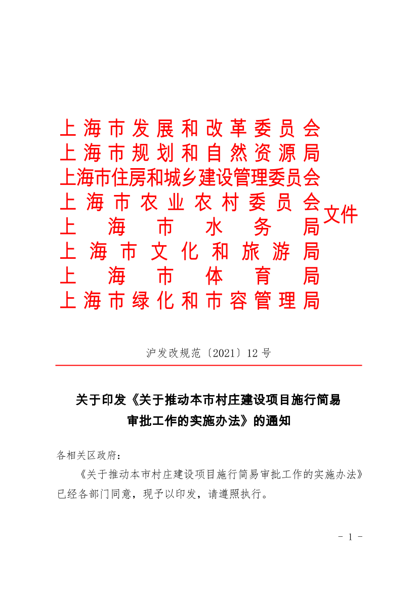 附件:《关于推动本市村庄建设项目施行简易审批工作的实施办法》