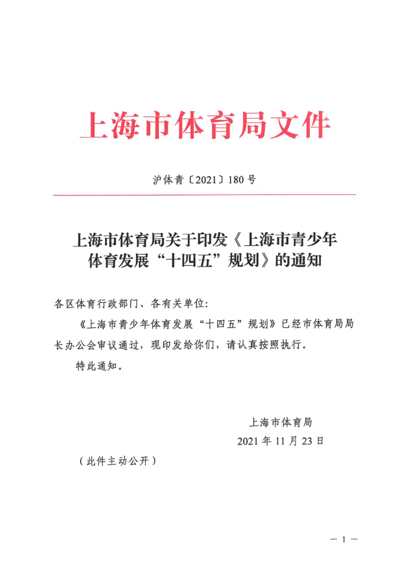 《上海市青少年体育发展“十四五”规划》已经市体育局局长办公会审议通过,现印发给你们,请认真按照执行。