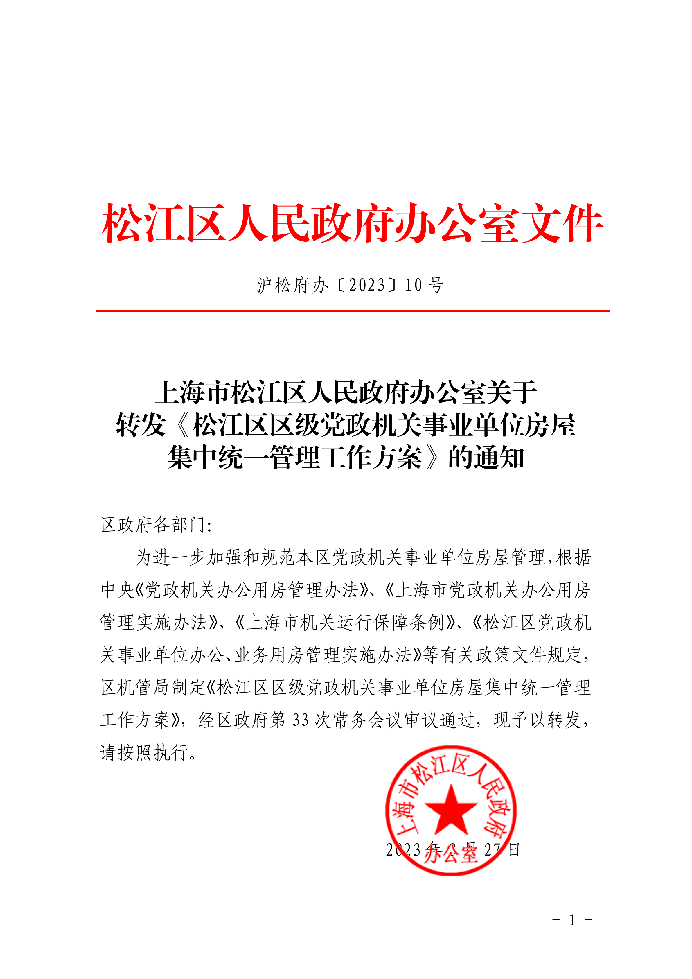 根据中央《党政机关办公用房管理办法》、《上海市党政机关办公用房管理实施办法》、《上海市机关运行保障条例》、《松江区党政机关事业单位办公、业务用房管理实施办法》等有关政策文件规定,为进一步加强和规范本区党政机关事业单位房屋管理,经六届区委第66次书记会、2023年区政府第33次常务会议,六届区委第63次常委会研究决定,对本区党政机关事业单位房屋实施集中统一管理。为推进工作落实,制定本工作方案。