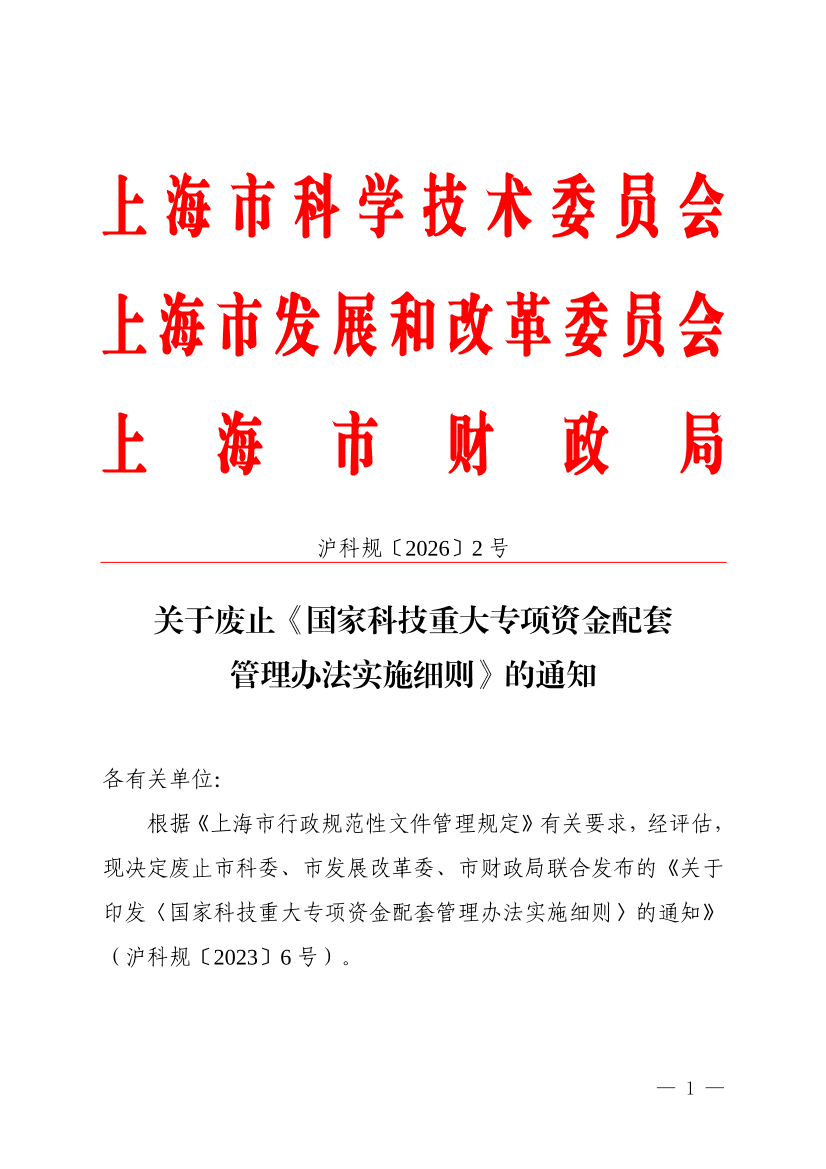 沪科规〔2026〕2号