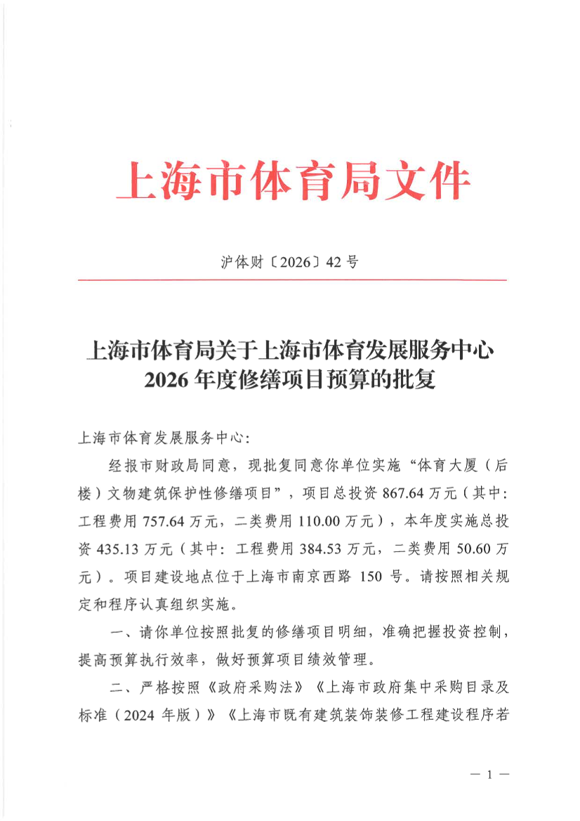 附件:上海市体育发展服务中心2026年度修缮项目预算批复明细表