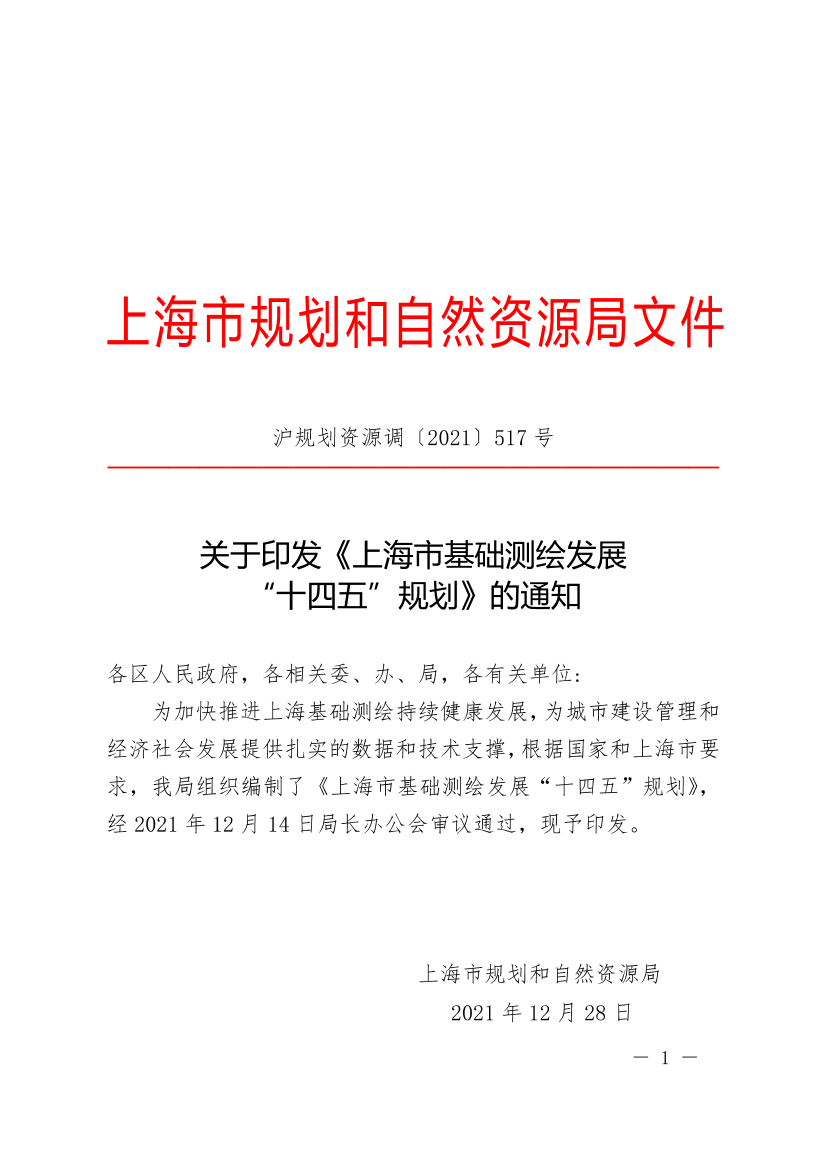 关于印发《上海市基础测绘发展“十四五”规划》的通知