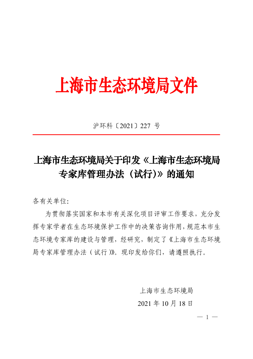 上海市生态环境局专家库管理办法