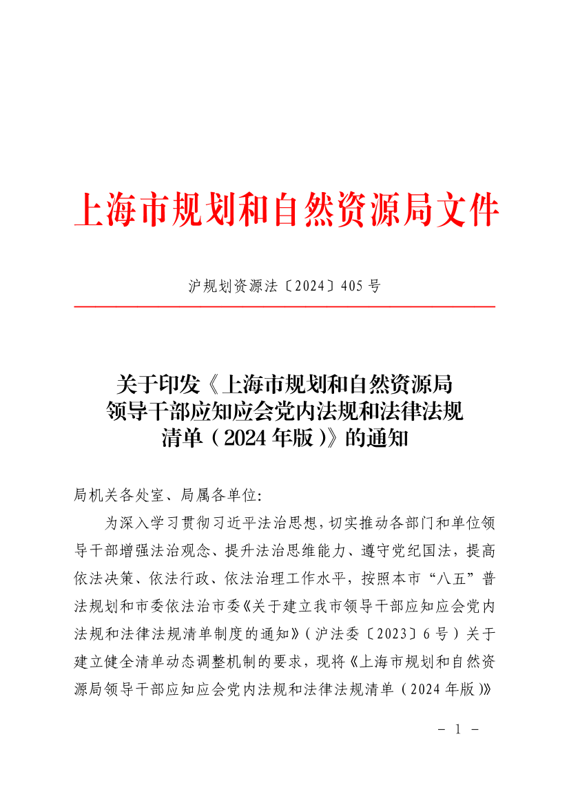 关于印发《上海市规划和自然资源局领导干部应知应会党内法规和法律法规清单(2024年版)》的通知