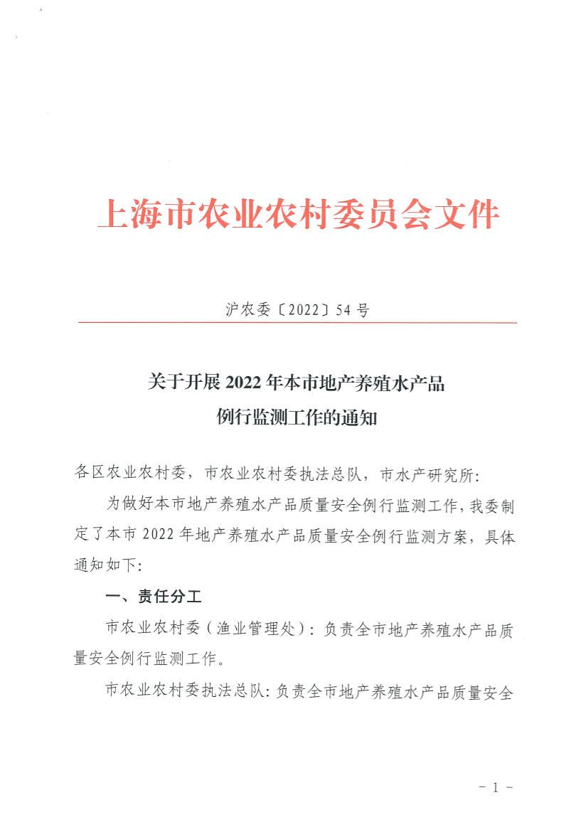 为做好本市地产养殖水产品质量安全例行监测工作,我委制定了本市2022年地产养殖水产品质量安全例行监测方案,具体通知如下: