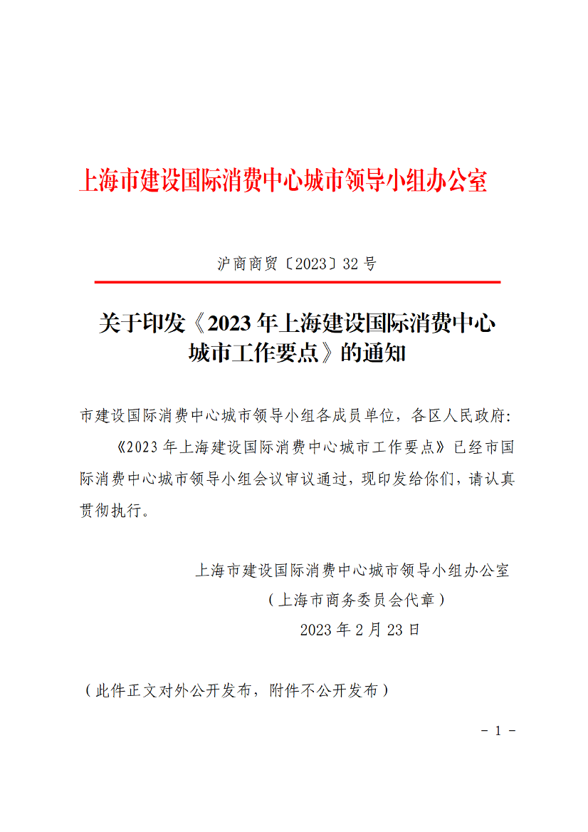 《2023年上海建设国际消费中心城市工作要点》已经市国际消费中心城市领导小组会议审议通过,现印发给你们,请认真贯彻执行。