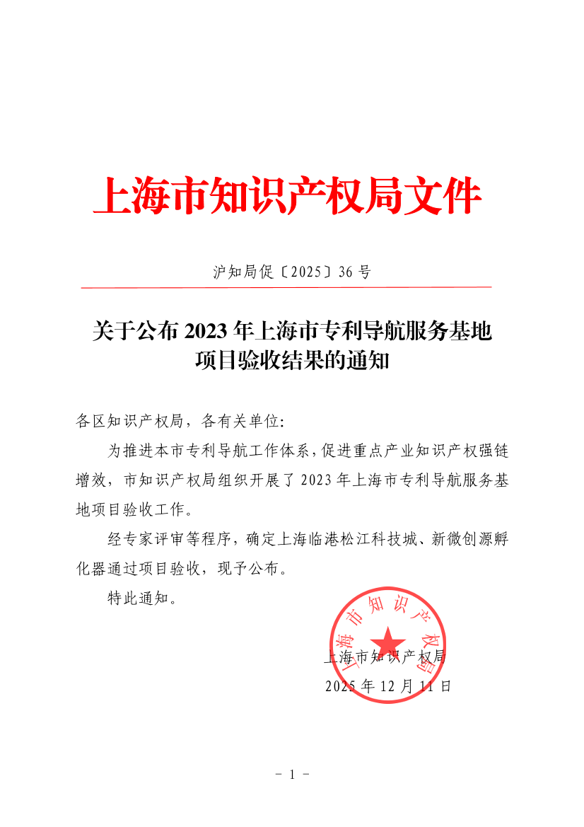 经专家评审等程序,确定上海临港松江科技城、新微创源孵化器通过项目验收,现予公布。