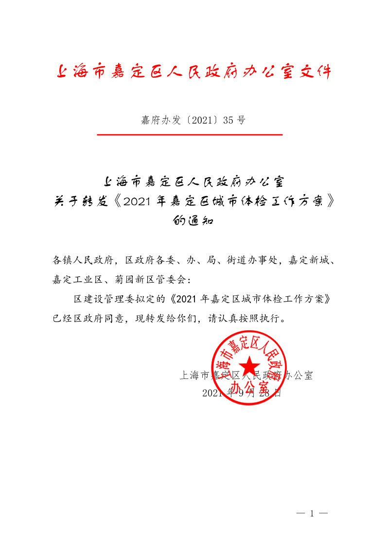 区建设管理委拟定的《2021年嘉定区城市体检工作方案》已经区政府同意,现转发给你们,请认真按照执行。