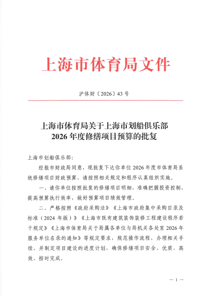 经报市财政局同意,现批复下达你单位2026年度市体育局系统修缮项目财政预算,请按照相关规定和程序认真组织实施。