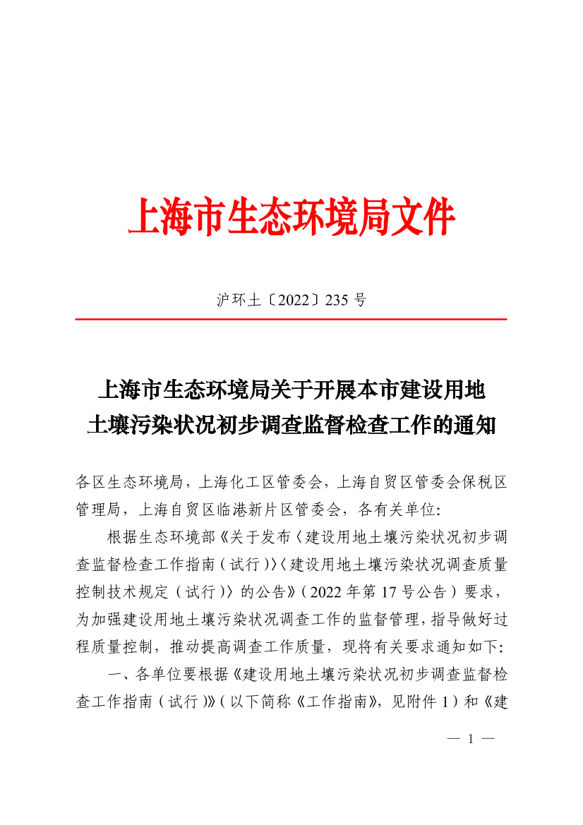根据生态环境部《关于发布〈建设用地土壤污染状况初步调查监督检查工作指南(试行)〉〈建设用地土壤污染状况调查质量控制技术规定(试行)〉的公告》(2022年第17号公告)要求,为加强建设用地土壤污染状况调查工作的监督管理,指导做好过程质量控制,推动提高调查工作质量,现将有关要求通知如下: