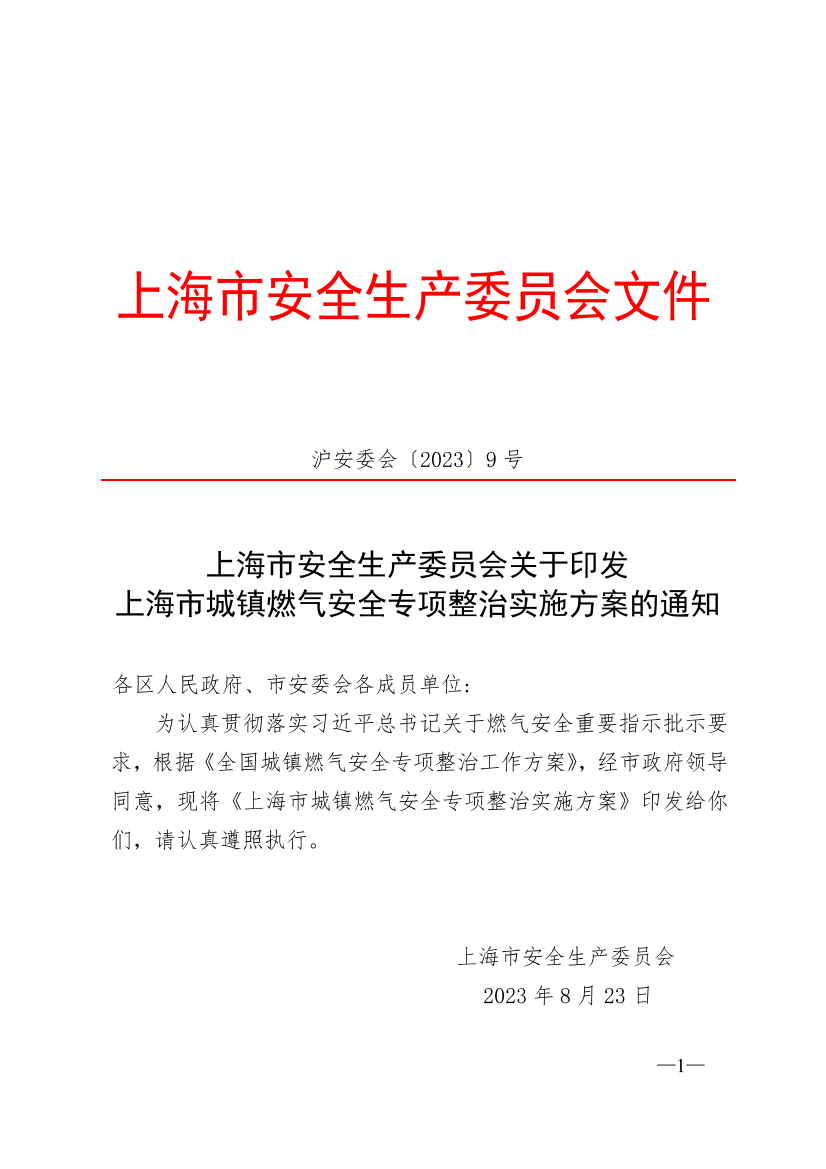 为深入贯彻习近平总书记关于燃气安全重要指示批示要求,落实国务院安全生产委员会《全国城镇燃气安全专项整治工作方案》(安委〔2023〕3号)相关部署,全面开展本市城镇燃气安全专项整治,切实保障人民群众生命财产安全,制定本实施方案。