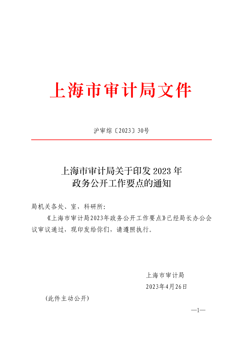 上海市审计局2023年政务公开工作要点