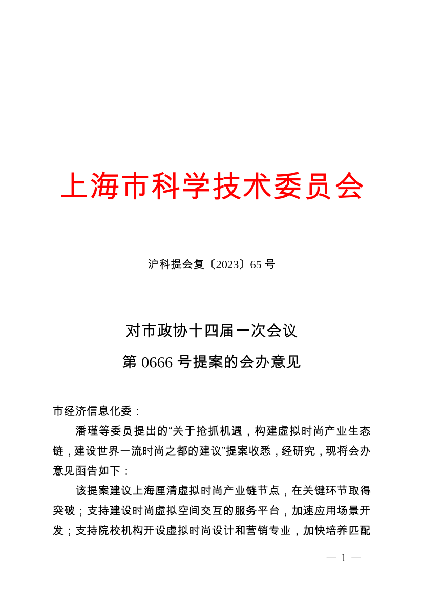 潘瑾等委员提出的“关于抢抓机遇,构建虚拟时尚产业生态链,建设世界一流时尚之都的建议”提案收悉,经研究,现将会办意见函告如下: