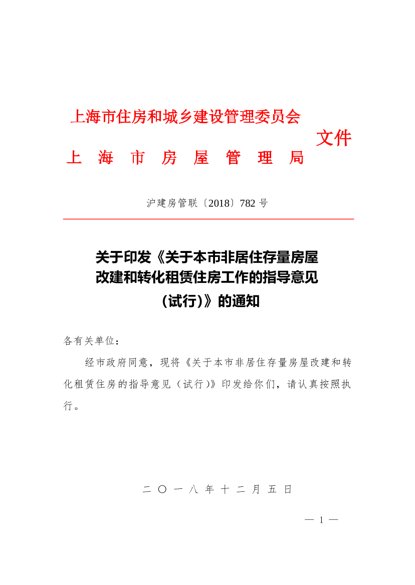 经市政府同意,现将《关于本市非居住存量房屋改建和转化租赁住房的指导意见(试行)》印发给你们,请认真按照执行。