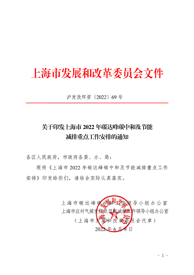 现将《上海市2022年碳达峰碳中和及节能减排重点工作安排》印发给你们,请结合实际认真落实。