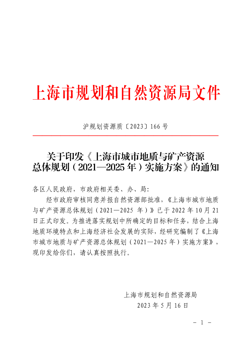 关于印发《上海市城市地质与矿产资源总体规划(2021—2025年)实施方案》的通知