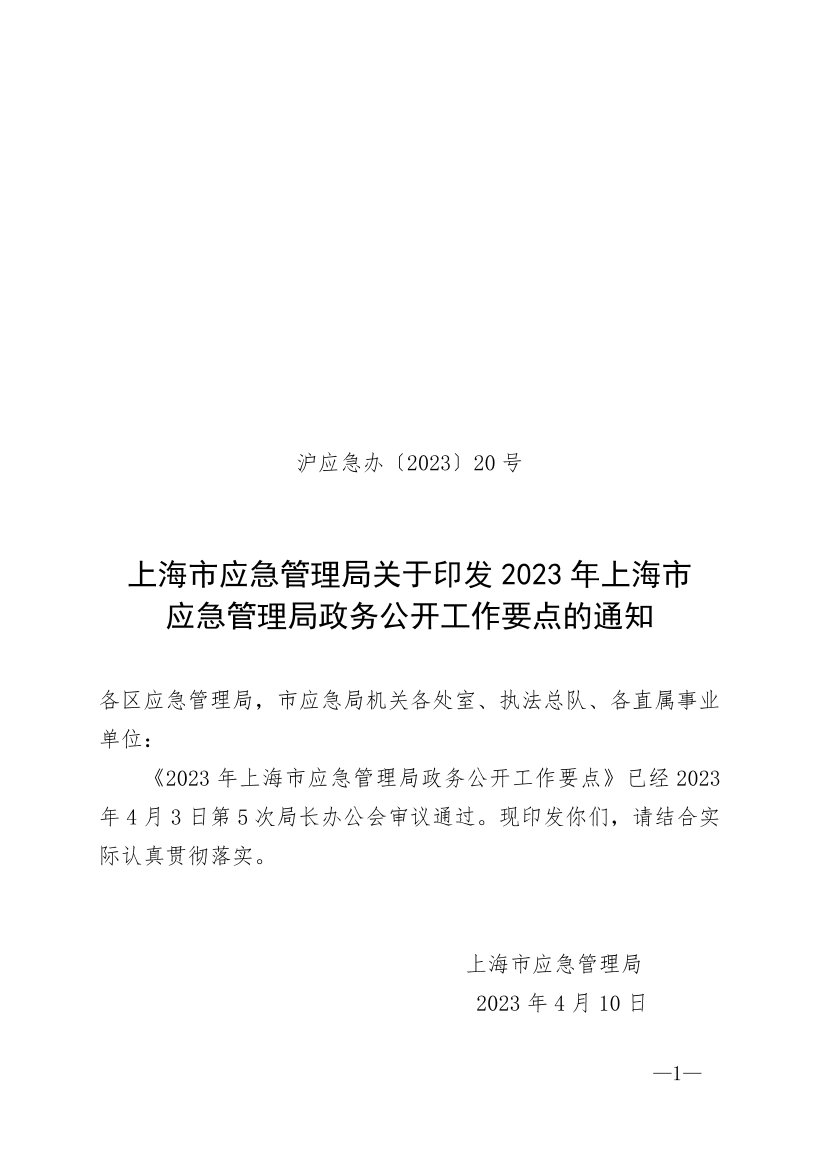 《2023年上海市应急管理局政务公开工作要点》已经2023 年4月3日第5次局长办公会审议通过。现印发你们,请结合实际认真贯彻落实。