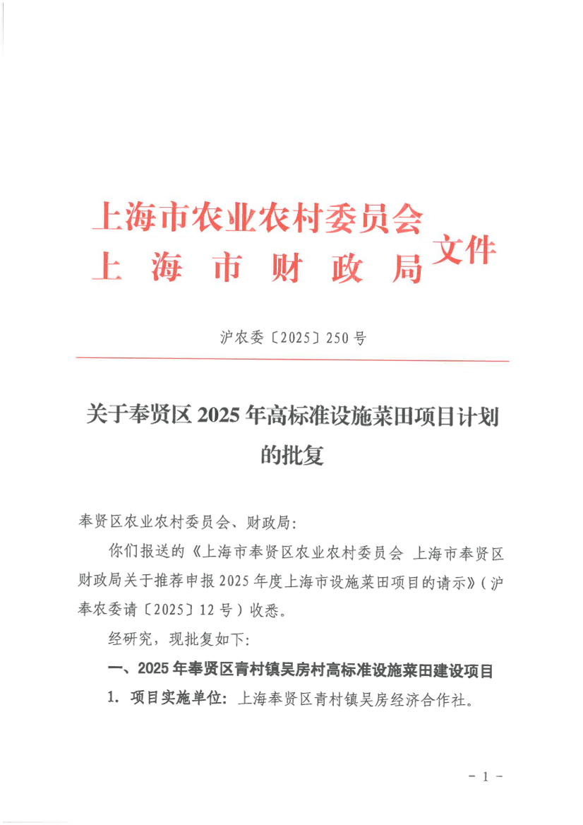 一、2025年奉贤区青村镇吴房村高标准设施菜田建设项目