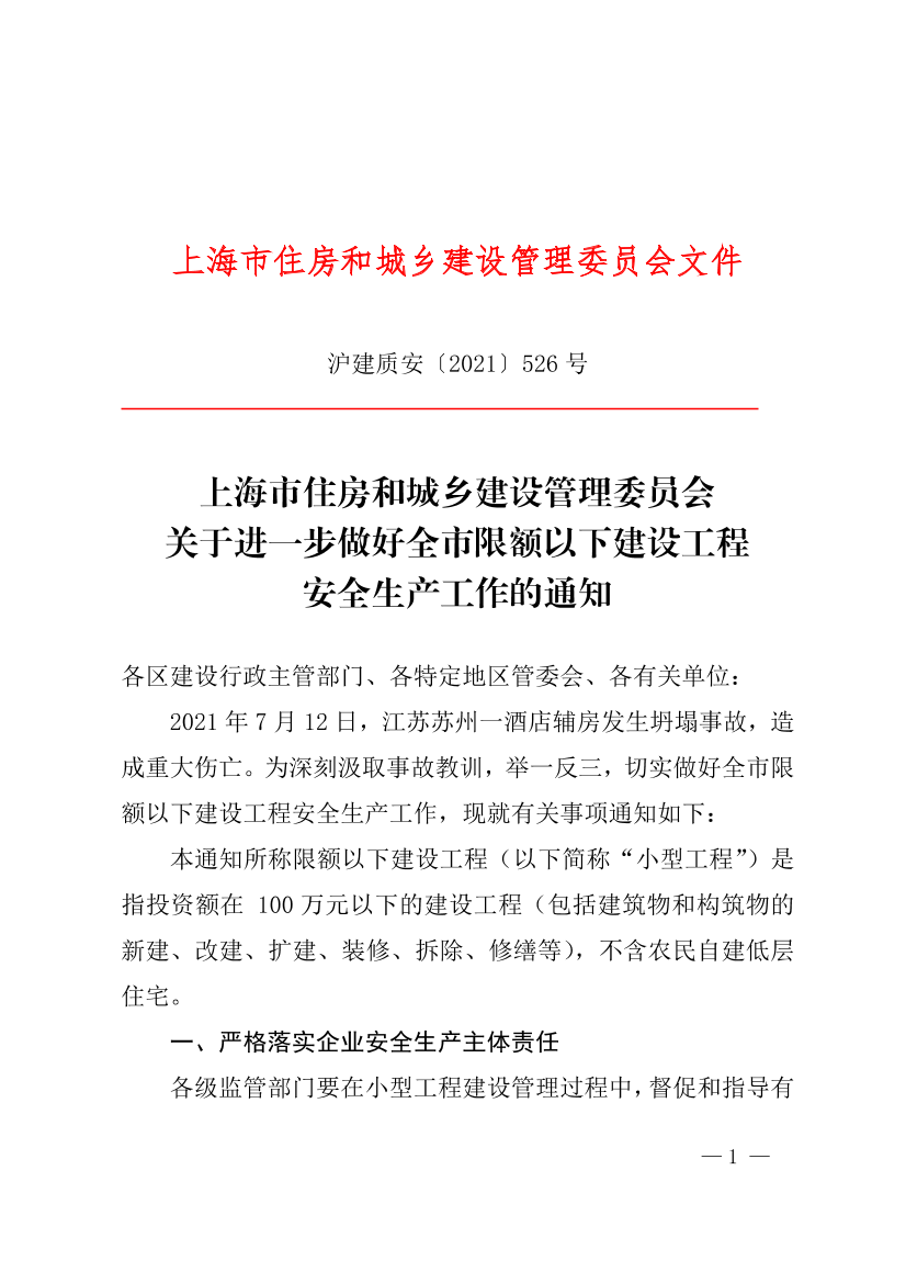 2021年7月12日,江苏苏州一酒店辅房发生坍塌事故,造成重大伤亡。为深刻汲取事故教训,举一反三,切实做好全市限额以下建设工程安全生产工作,现就有关事项通知如下: