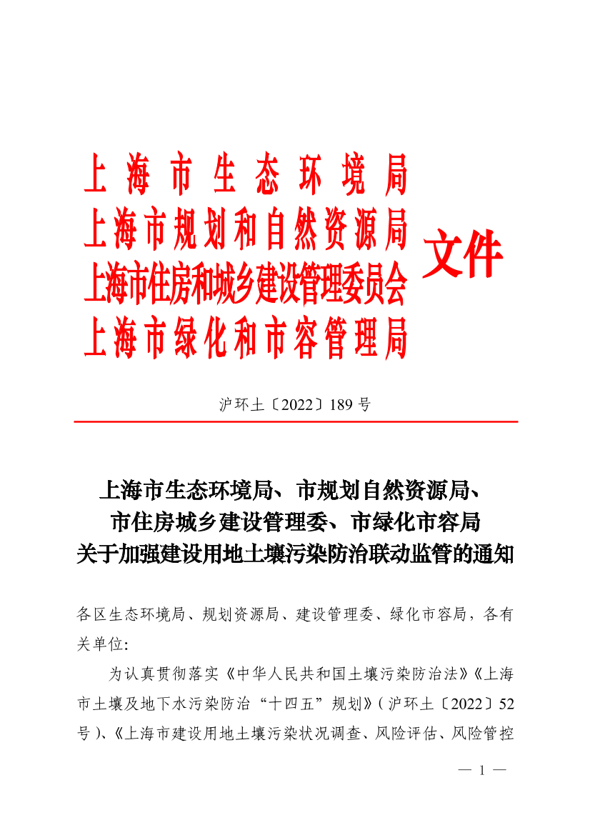 为认真贯彻落实《中华人民共和国土壤污染防治法》《上海市土壤及地下水污染防治“十四五”规划》(沪环土〔2022〕52号)、《上海市建设用地土壤污染状况调查、风险评估、风险管控和修复、效果评估等工作的若干规定》(沪环规〔2021〕4号),加强再开发利用建设用地土壤污染防治联动监管,完善各部门联动监管机制,现将有关要求通知如下: