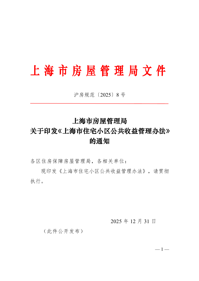 关于印发《上海市住宅小区公共收益管理办法》的通知
