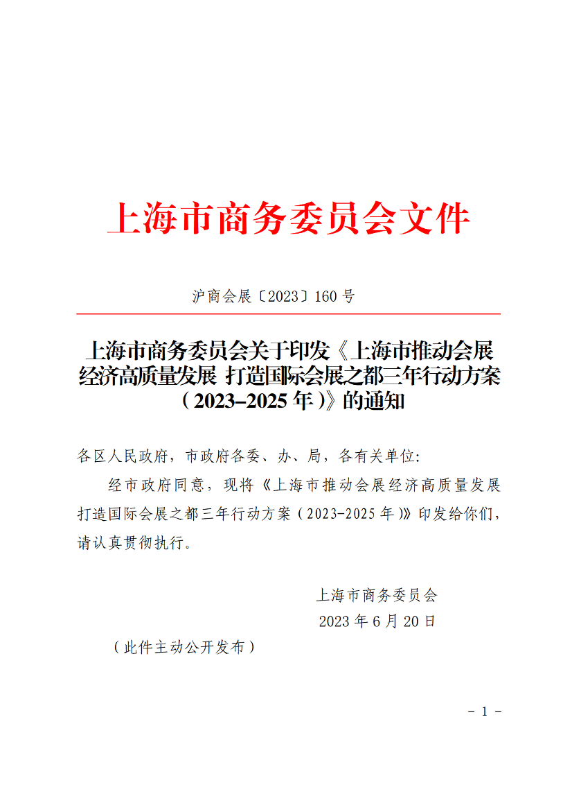 经市政府同意,现将《上海市推动会展经济高质量发展 打造国际会展之都三年行动方案(2023-2025年)》印发给你们,请认真贯彻执行。