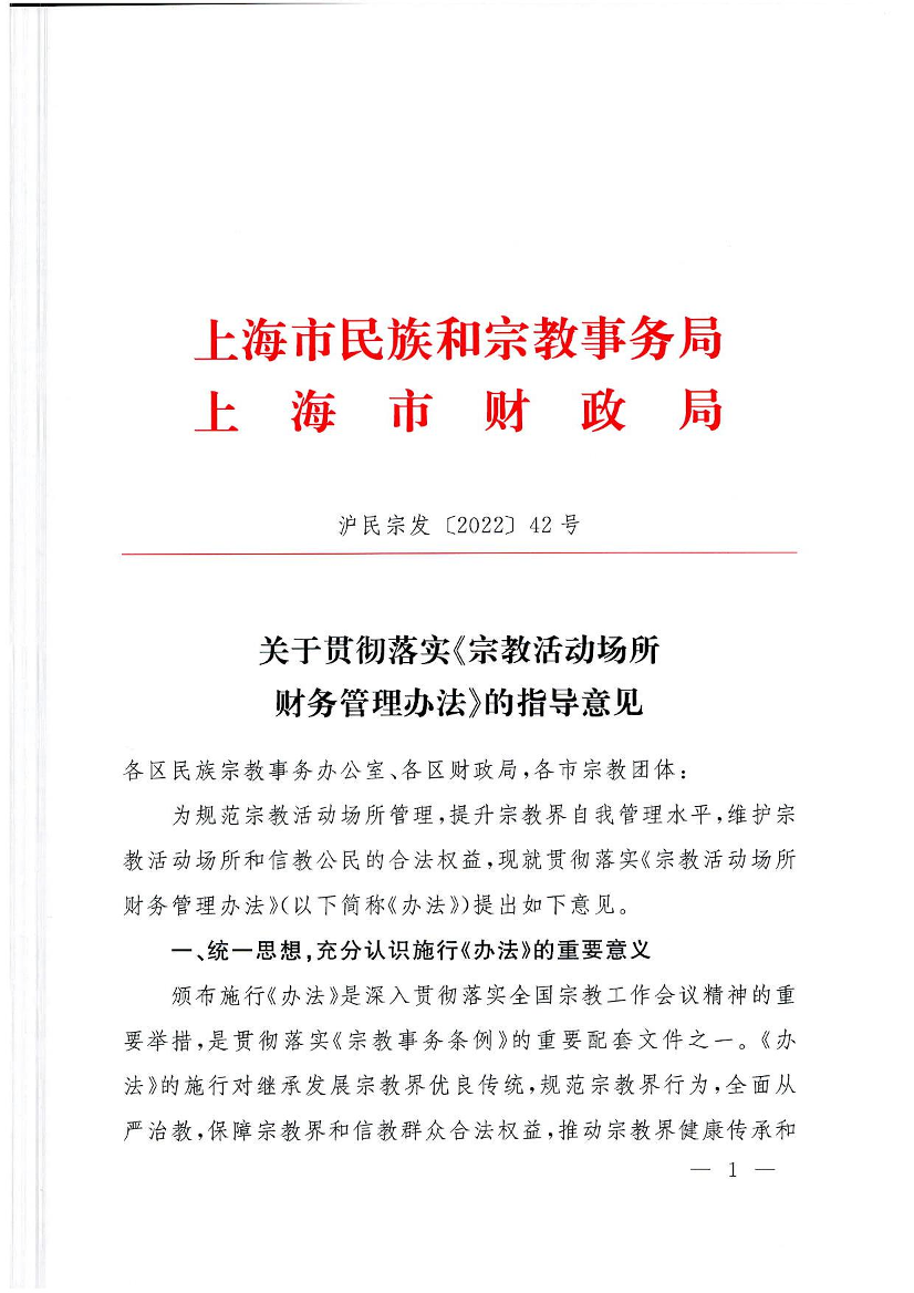 为规范宗教活动场所管理,提升宗教界自我管理水平,维护宗教活动场所和信教公民的合法权益,现就贯彻落实《宗教活动场所财务管理办法》(以下简称《办法》)提出如下意见。