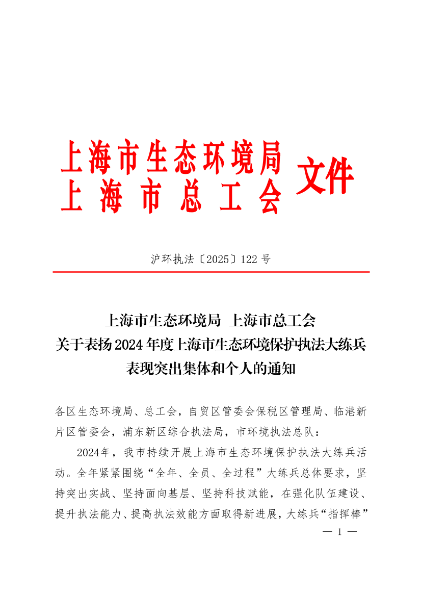 2024年度上海市生态环境保护执法大练兵表现突出集体名单