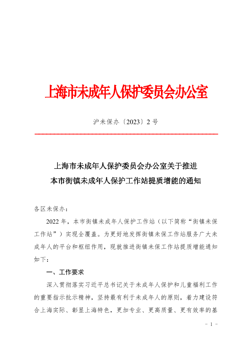 2022年,本市街镇未成年人保护工作站(以下简称“街镇未保工作站”)实现全覆盖。为更好地发挥街镇未保工作站服务广大未成年人的平台和枢纽作用,现就推进街镇未保工作站提质增能通知如下: