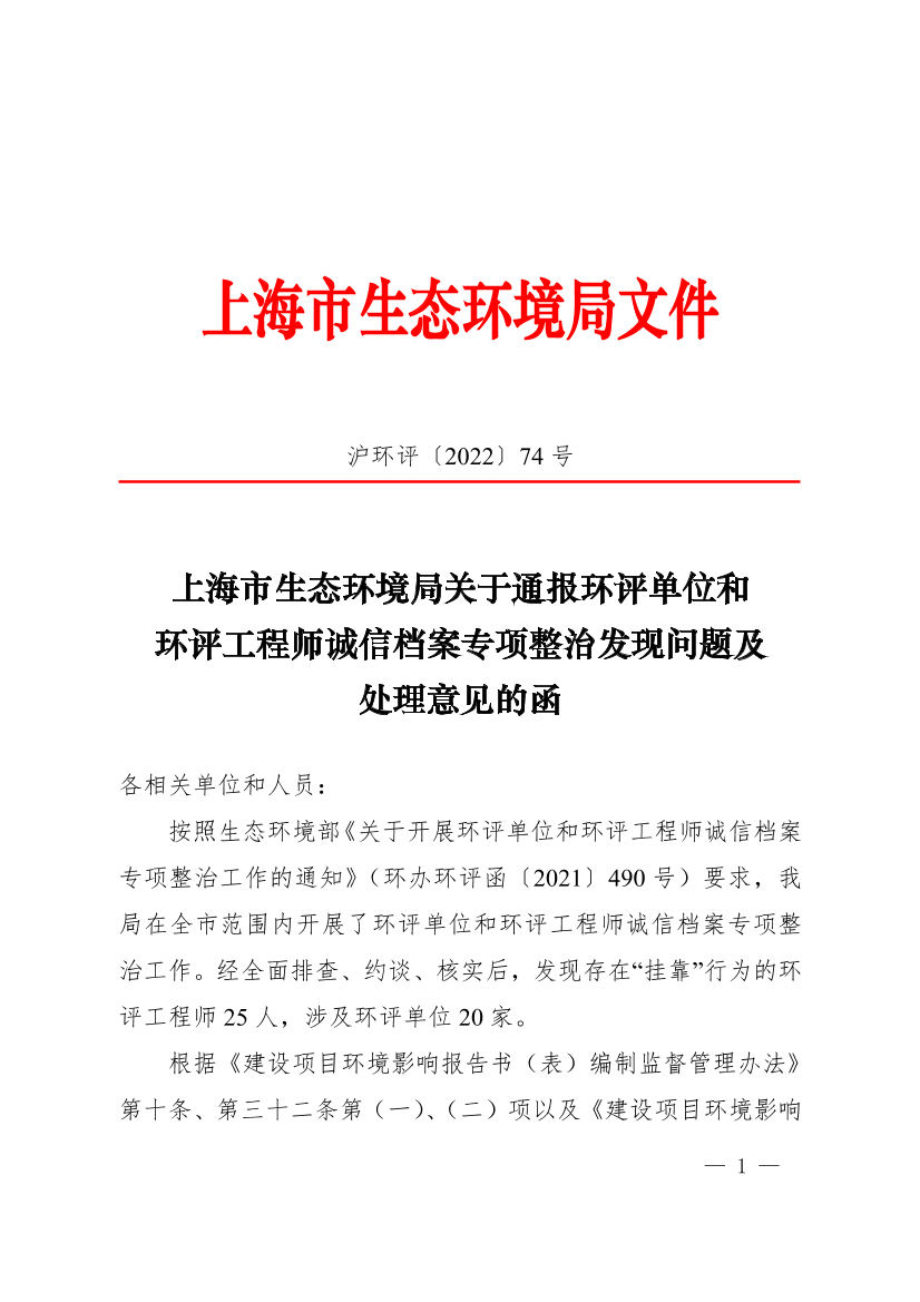 请各环评单位和环评工程师引以为戒,进一步规范环评从业行为,确保向环境影响评价信用平台提交信息的真实性、准确性和完整性。在本市从业的环评单位及人员相关信息发生变更时,需重新填写《守信承诺书》并递交我局。各级环评审批部门要加强对环评单位和环评工程师的日常监管,对报批的第一版环评文件质量进行考核打分,对发现的问题进行处理和失信记分,促进本市环评行业健康有序发展。
