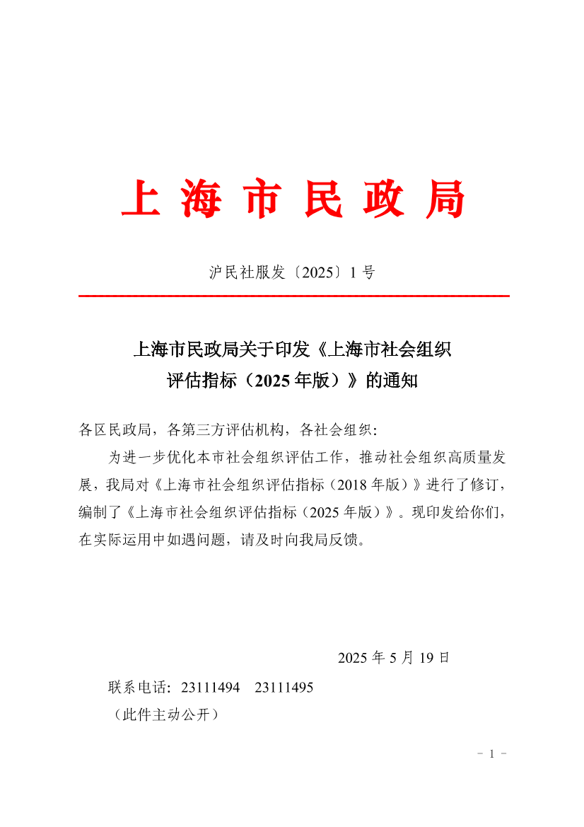 为进一步优化本市社会组织评估工作,推动社会组织高质量发展,我局对《上海市社会组织评估指标(2018年版)》进行了修订,编制了《上海市社会组织评估指标(2025年版)》。现印发给你们,在实际运用中如遇问题,请及时向我局反馈。