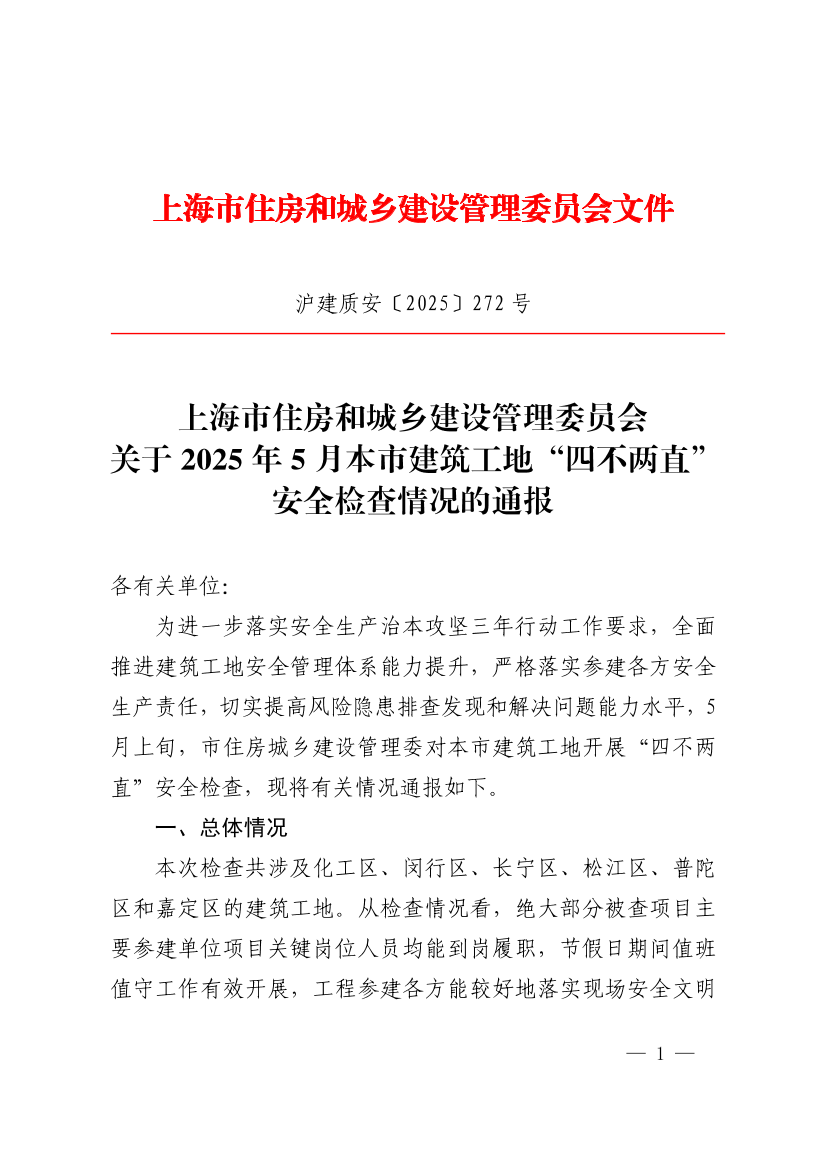 关于2025年5月本市建筑工地“四不两直”安全检查情况的通报