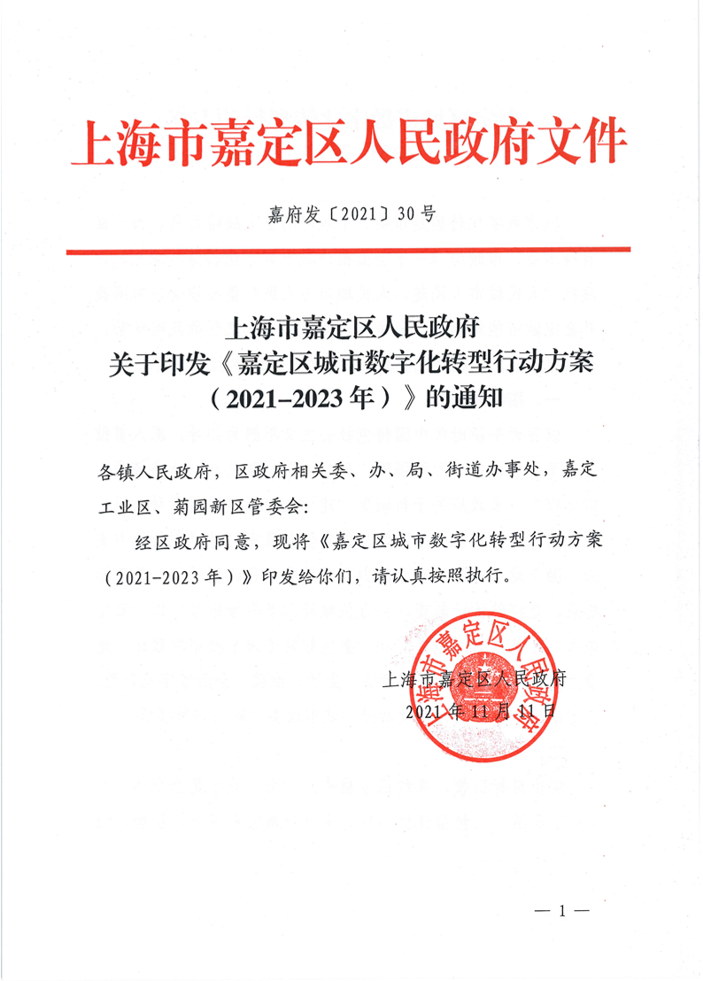 嘉定区城市数字化转型行动方案(2021-2023年)