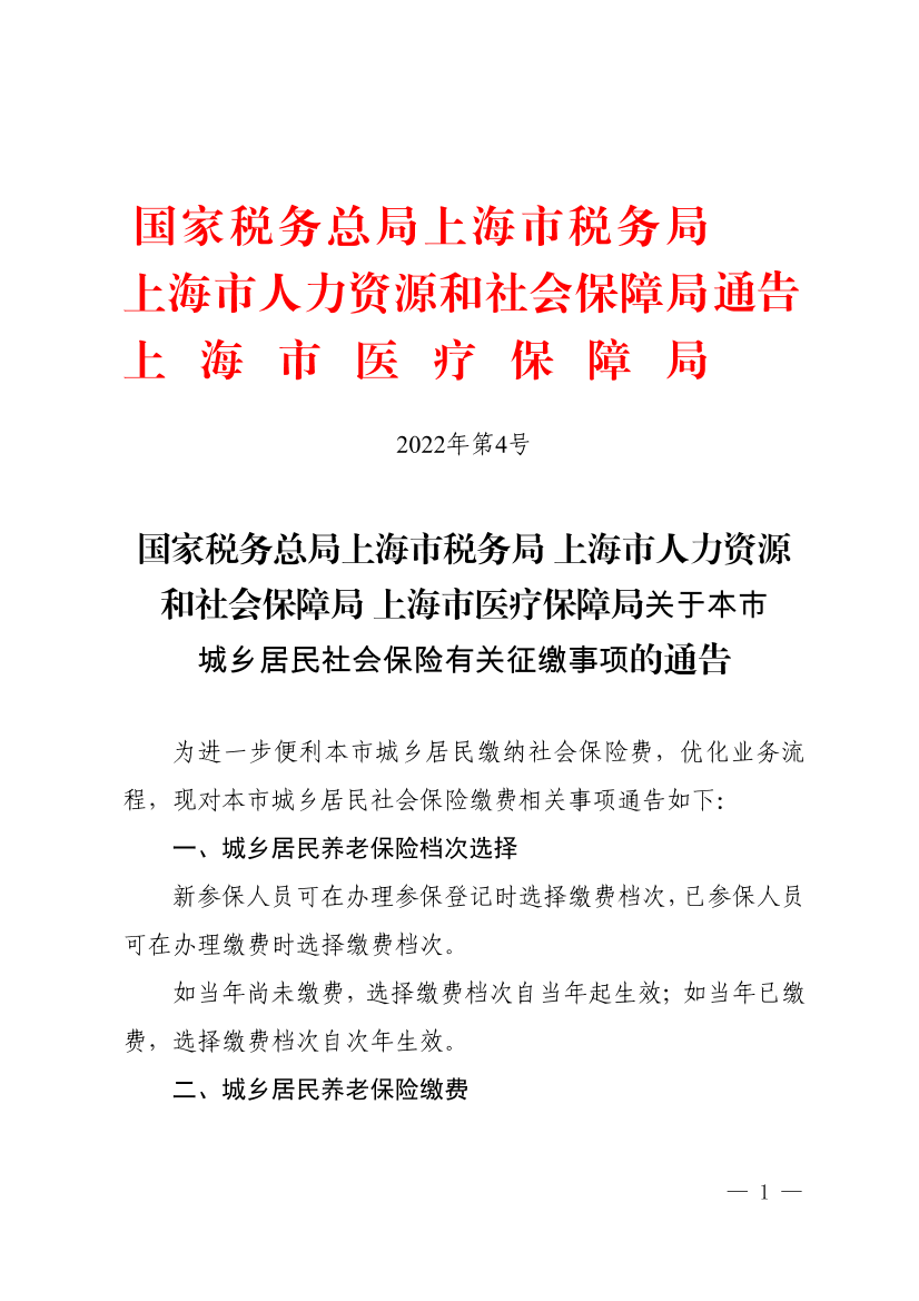 国家税务总局上海市税务局 上海市人力资源和社会保障局 上海市医疗保障局通告2022年第4号