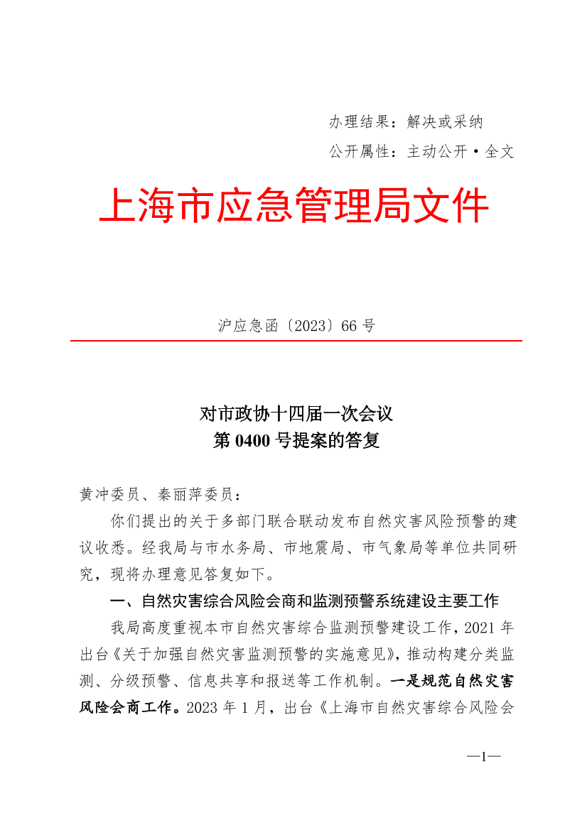 你们提出的关于多部门联合联动发布自然灾害风险预警的建议收悉。经我局与市水务局、市地震局、市气象局等单位共同研究,现将办理意见答复如下。