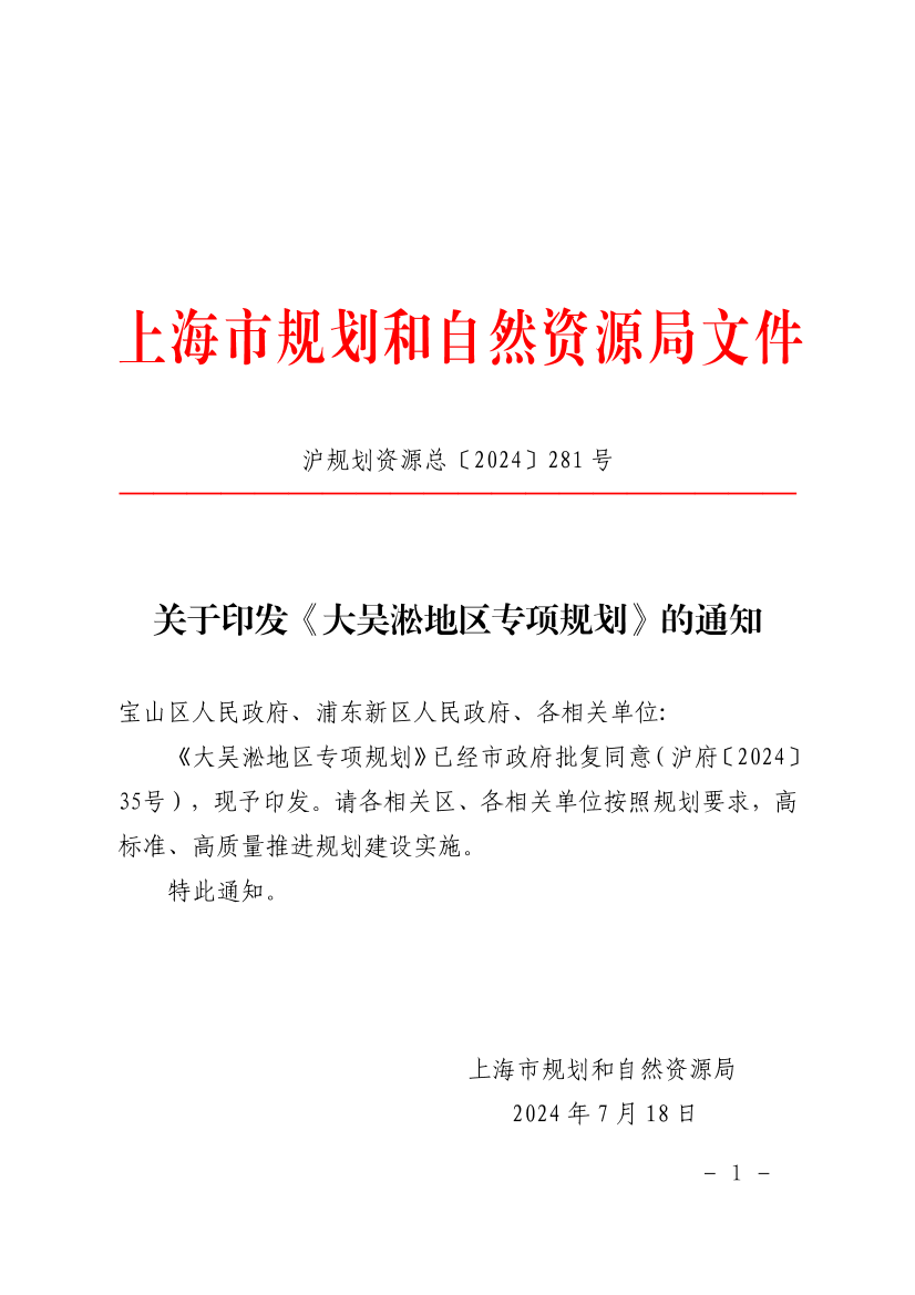 《大吴淞地区专项规划》已经市政府批复同意(沪府〔2024〕35号),现予印发。请各相关区、各相关单位按照规划要求,高标准、高质量推进规划建设实施。
