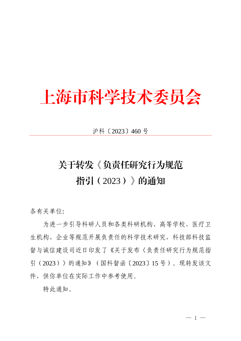 为进一步引导科研人员和各类科研机构、高等学校、医疗卫生机构、企业等规范开展负责任的科学技术研究,科技部科技监督与诚信建设司近日印发了《关于发布〈负责任研究行为规范指引(2023)〉的通知》(国科督函〔2023〕15号)。现转发该文件,供你单位在实际工作中参考使用。