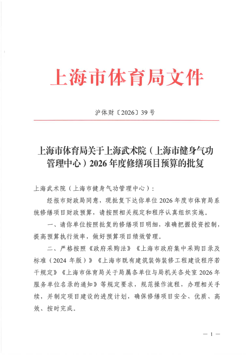 附件:上海武术院(上海市健身气功管理中心)2026年度修缮项目预算批复明细表