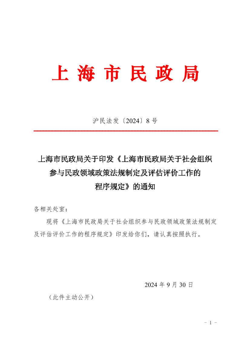 现将《上海市民政局关于社会组织参与民政领域政策法规制定及评估评价工作的程序规定》印发给你们,请认真按照执行。