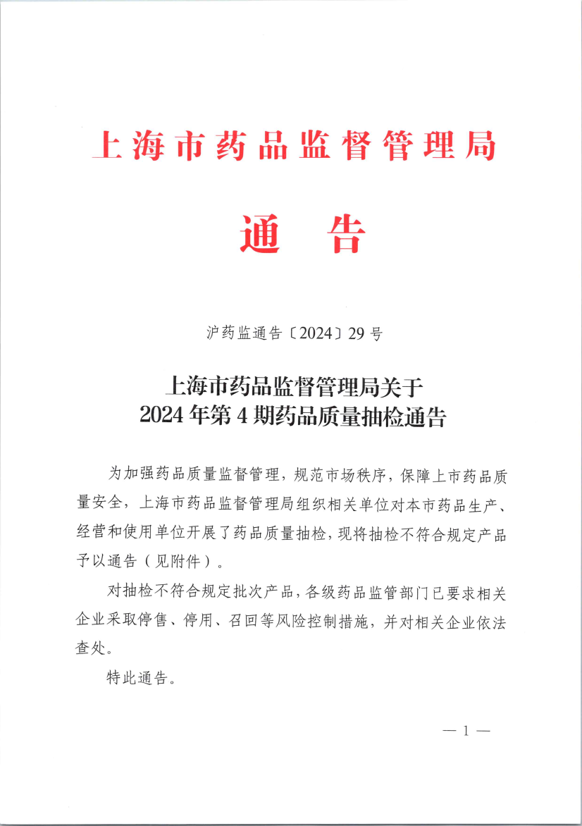 沪药监通告〔2024〕29号