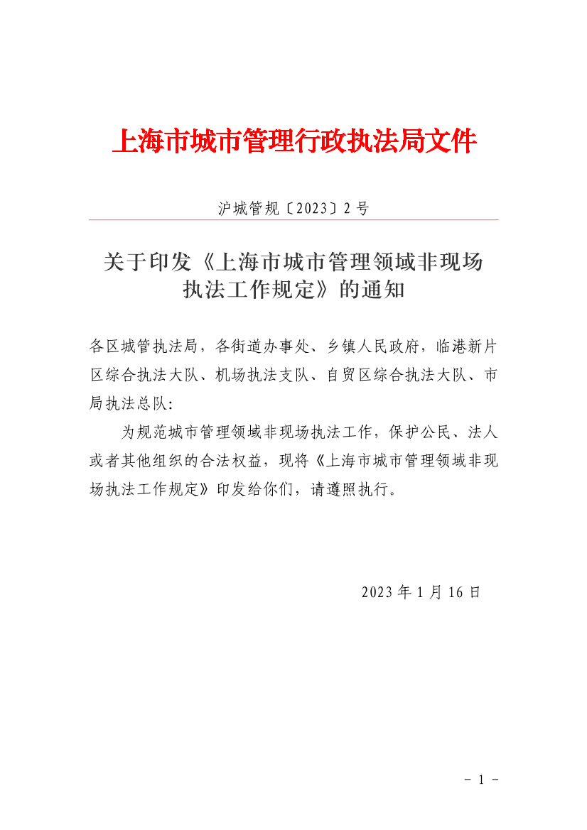 第二十四条(施行日期) 本规定由上海市城管执法局负责解释,自2023年2月1日起施行。2020年9月7日印发的《上海市城管执法部门非现场执法工作规定(试行)》(沪城管规〔2020〕2号)同时废止。