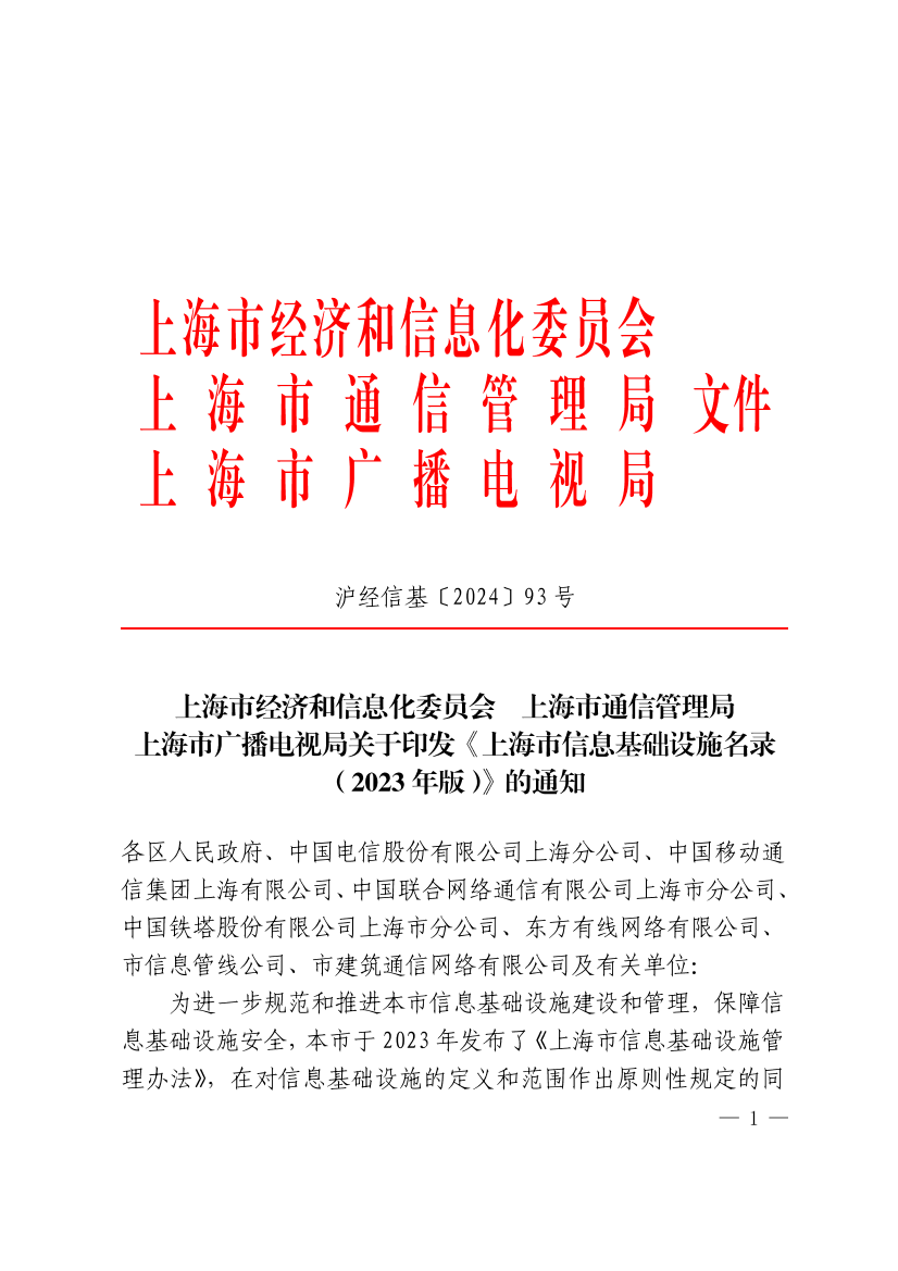 为进一步规范和推进本市信息基础设施建设和管理,保障信息基础设施安全,本市于2023年发布了《上海市信息基础设施管理办法》,在对信息基础设施的定义和范围作出原则性规定的同时,明确由市经济信息化委会同市通信管理、广播电视等部门编制信息基础设施名录,并适时更新。