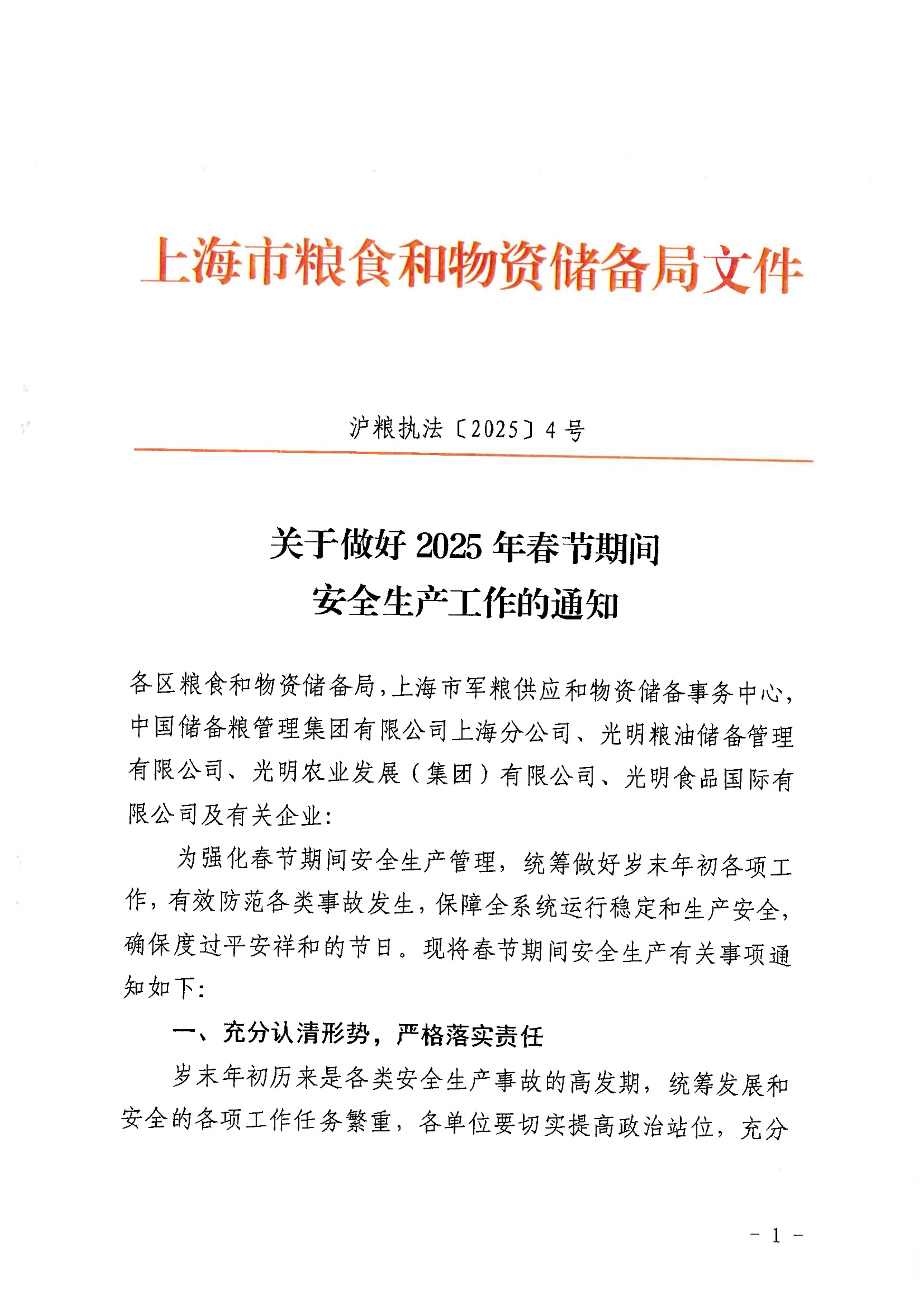 为强化春节期间安全生产管理,统筹做好岁末年初各项工作,有效防范各类事故发生,保障全系统运行稳定和生产安全,确保度过平安祥和的节日。现将春节期间安全生产有关事项通知如下: