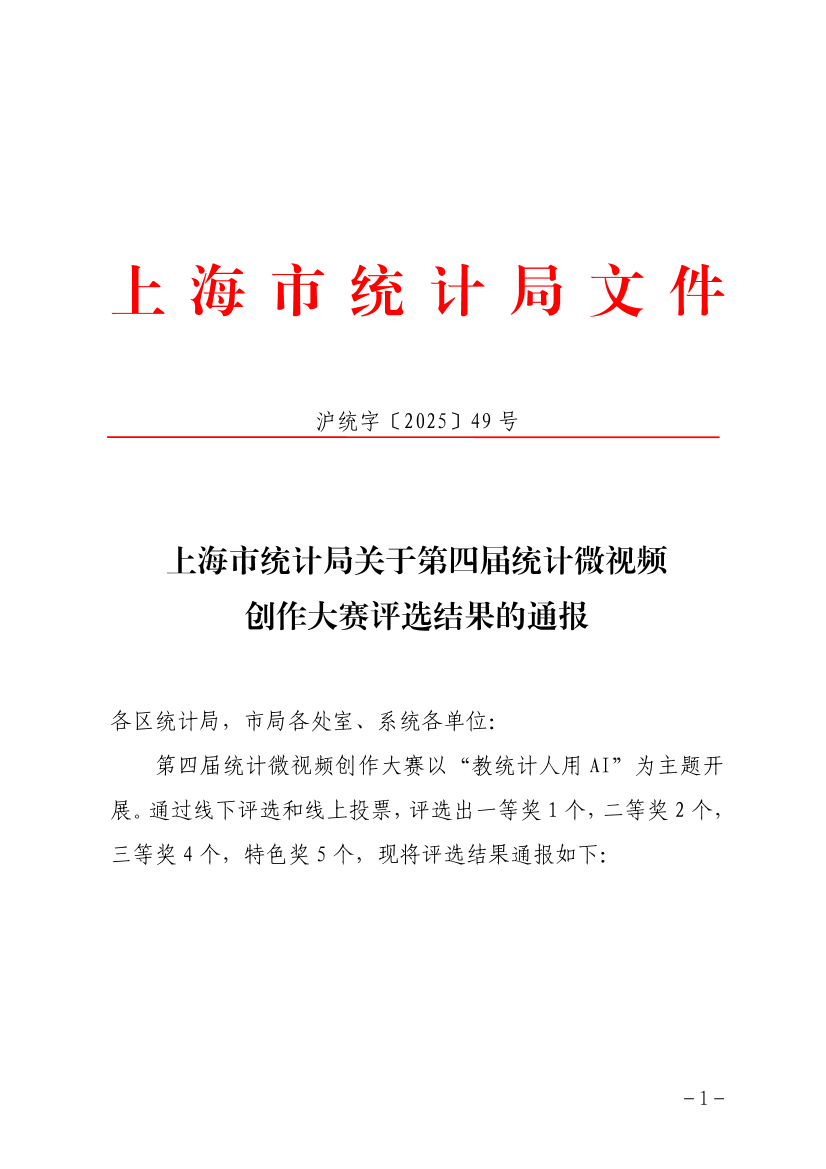 希望本市各级统计部门和广大统计工作者以此次大赛为契机,聚焦AI与统计融合应用,积极创作兼具专业性与传播性的统计微视频作品,深挖典型案例、提炼实践经验、讲好统计故事,共同打造覆盖广泛、内容鲜活的统计教育培训资源,助力上海统计事业在数字化转型浪潮中行稳致远!