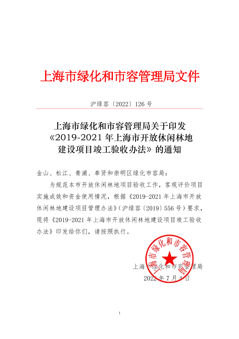为规范本市开放休闲林地项目验收工作,客观评价项目实施成效和资金使用情况,根据《2019-2021年上海市开放休闲林地建设项目管理办法》(沪绿容〔2019〕556号)要求,现将《2019-2021年上海市开放休闲林地建设项目竣工验收办法》印发给你们,请按照执行。